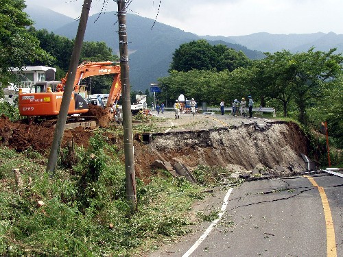 台風4号による大雨により、1日わずかずつの地すべりが続いたため、