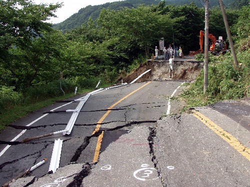 今月24日現在で、陥没した箇所は、3メートル以上の段差になり、現
