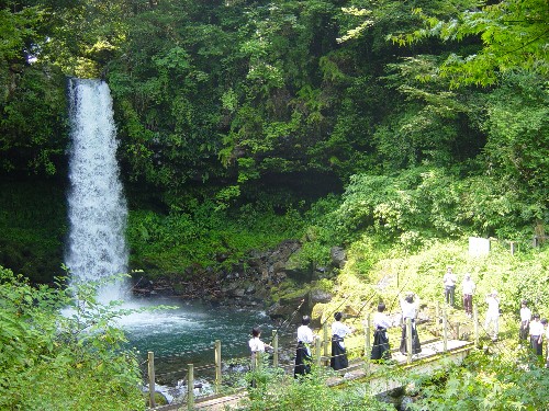 滝壺では記念行事として、滝娘による水汲みの儀と破魔の矢の儀、オープ