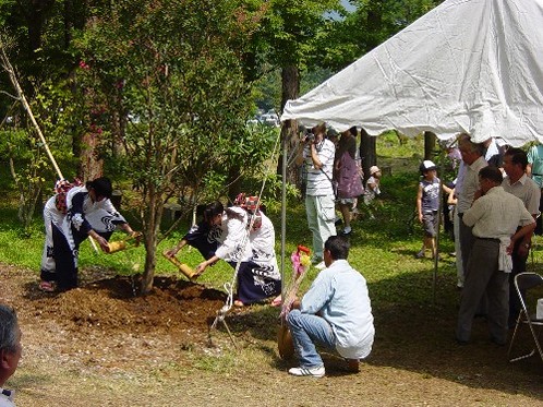 ニングセレモニーでは、記念植樹・萬城太鼓の演奏が行われました。